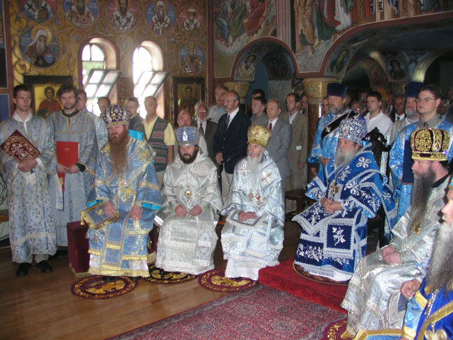 Beginning of the Liturgy. Bishop Agapit, Bishop Alexander, Archbishop Mark, Metropolitan Laurus, Bishop Kyrill, Bishop Peter.